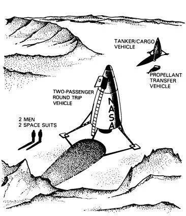 除此之外,还有月球表面集合(Lunar Surface Rendezvos,LSR)这种小党派的存在——用两发不那么大的火箭,分别带着两艘大的飞船落月,但其中一艘是油船,专门给载人飞船加油,让其直接返回。