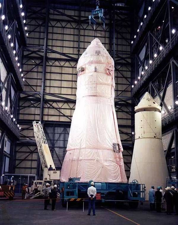 正在吊运中的阿波罗6号飞船部分。来源:NASA