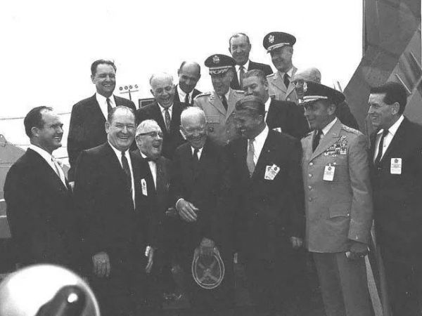 1960年9月8日,艾森豪威尔总统出席了马歇尔太空飞行中心的落成典礼,与时任NASA局长格伦南以及冯·布劳恩合影留念,看总统笑得这么开心,批示肯定是过了。