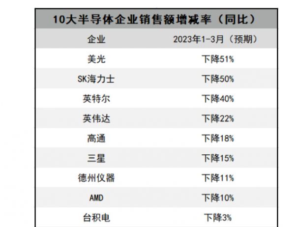 事实上,这个现象,之前就有媒体预测到了,比如日媒曾经还出了一份数据,表示前10大芯片厂商,9家下跌,如下图所示。