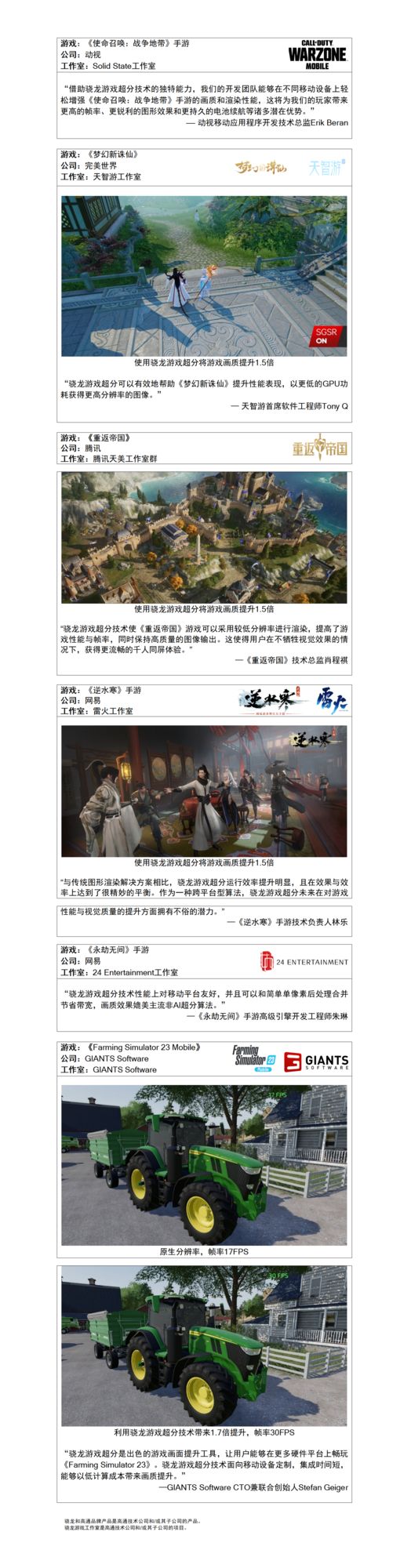 支持骁龙游戏超分技术的移动游戏和XR产品预计将于今年晚些时候发布。