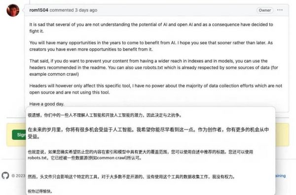 在争辩的最后,Rom 依然坚持自己的观点:很遗憾,你们中的一些人还是不理解 AI 的潜力,作为创作者,你们有更多机会从中受益,却与此斗争,这令人感到悲哀。
