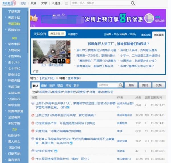 天涯社区是中国最早的一批网络论坛之一,创立于1999年,曾经拥有超过1.3亿的注册用户,是全球最大的中文互联网社区。天涯社区承载了很多网友的回忆,也曾经对社会进步和文化创作产生过巨大的影响。