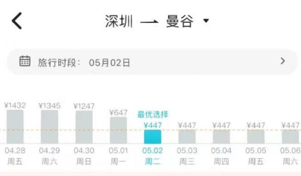 深圳的媛媛查看五一飞往泰国曼谷的机票后,大吃一惊。