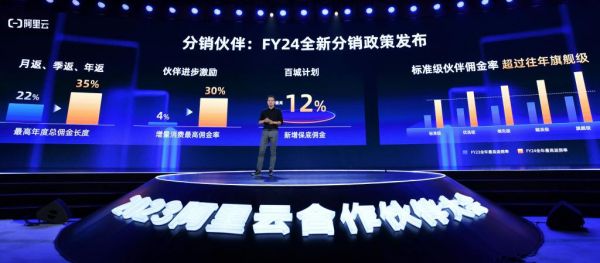 图片来源:阿里云而在伙伴激励上,据阿里云智能首席商业官蔡英华预计,专属伙伴的腰部客户年度消费规模将从 20 亿增长到 100 亿,扩大 5 倍。" 新财年我们下定决心把腰部客户的分销市场放给分销伙伴,由伙伴来主导跟进。" 蔡英华说。