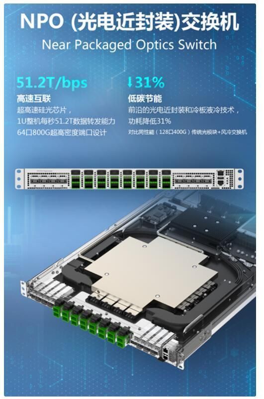 锐捷网络在业界进行了NPO、冷板式/浸没式液冷等创新技术的探索和市场实践。锐捷网络去年在北美发布了同时应用NPO硅光和冷板式液冷技术的51.2T 800G NPO硅光交换机,相比传统全可插拔+风冷方案,功耗降低31%;与头部互联网客户联合发布的在大型数据中心规模部署的浸没式液冷交换机,整体液冷方案帮助用户实现年均数据中心能效指标(PUE), 解决了数据中心能源低效的问题,提升了数据中心的可靠性和能源效率。