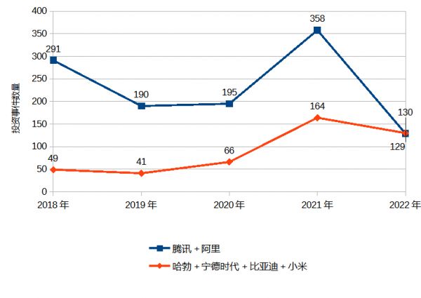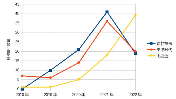 哈勃投资、宁德时代、比亚迪投资项目数量骤增(不含通过基金的间接投资)