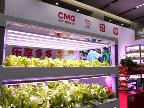 启动仪式现场,第三届多多农研大赛的种植装置亮相展台。赵歌 摄