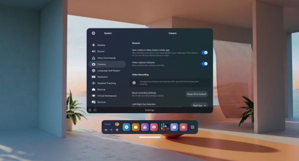 该版本还将带来高级相机设置,包括图像稳定选项、帧速率、比特率和宽高比等。这些工具让用户能够更好地捕捉和分享头显画面。