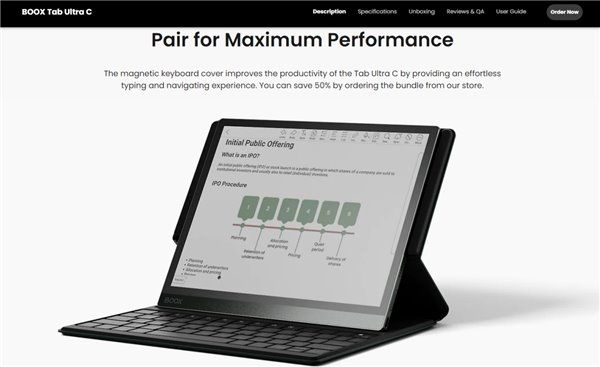 Tab Ultra C 作为一款彩色墨水平板,提供的不仅仅是颜色。还有各种有用的功能,可以按照自己选择的方式工作,搭配磁性键盘轻松的打字和导航体验,提高 Tab Ultra C 的工作效率。