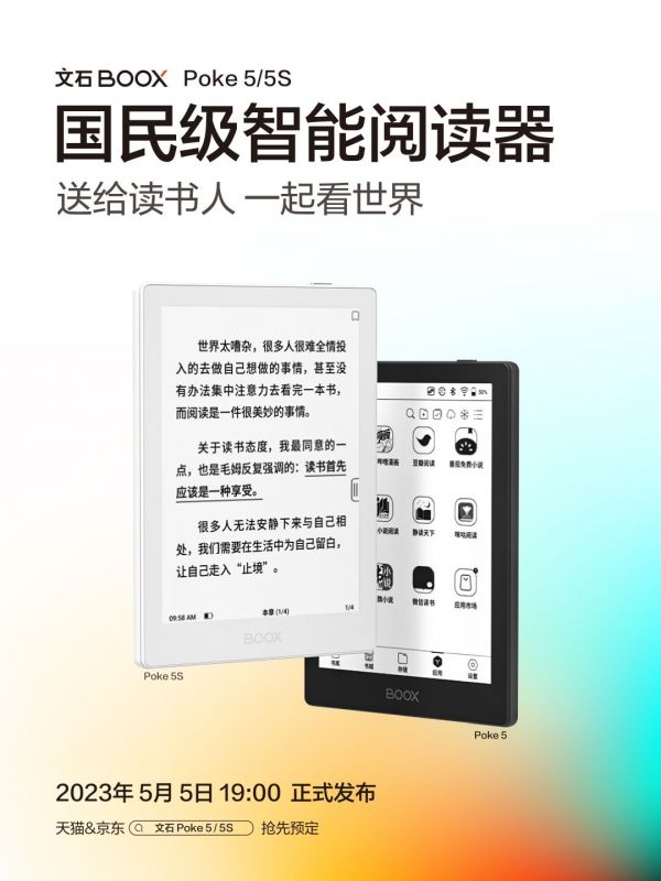 文石 BOOX Tab10C、Poke 5/5S 将于 5 月 5 日晚正式发布