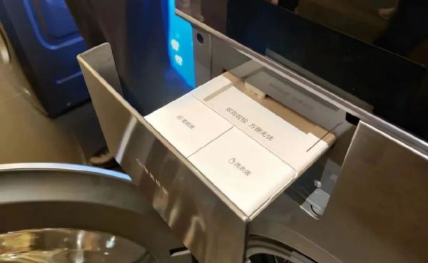 洗衣液的投放也变得智能。工作人员解释,洗衣机内置了称重功能,通过衣物重量调节洗衣液使用量。