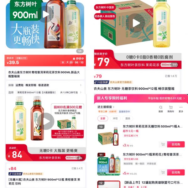 “瓶装饮料的零售渠道结构分散,作为传统行业,线下渠道仍为主市场。一款无糖茶饮以前线下超市卖5块,批发商厂家拿价会更低,但现在零售市场已经严重乱价了。”曾经为线下商超供货的线下经销商李林已经转战线上抖音直播卖货。