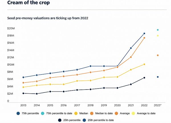 种子轮公司预估值从2022年起就不断攀升 图源:Pitchbook