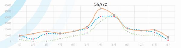 按全年流量统计,每年6-9月是流量的高峰期,其中7-8月峰型明显,这也是传统意义上的游泳旺季。