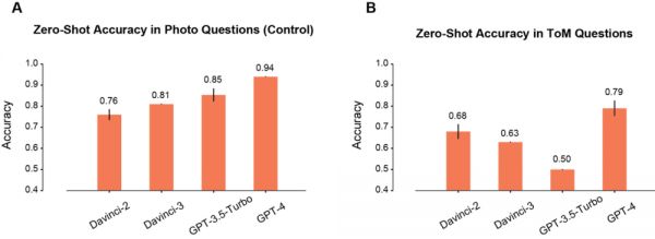 测试结果:人类在Photo场景的准确率为(86%±4%),ToM场景的准确率为(87%±4%)。