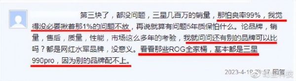 这就叫双标,致态某东好评率是98%,三星某东好评率也是98%,怎么好意思说这些话呢?这是为了三星,其它全黑啊。不止黑国产,还要把海力士,美光,铠侠这些国外品牌也全黑了。说实话,人家三星自己都没这么飘,你用个三星家用级SSD的就这么飘了?那用个三星企业级的SSD,还不得飘到火星上啊?