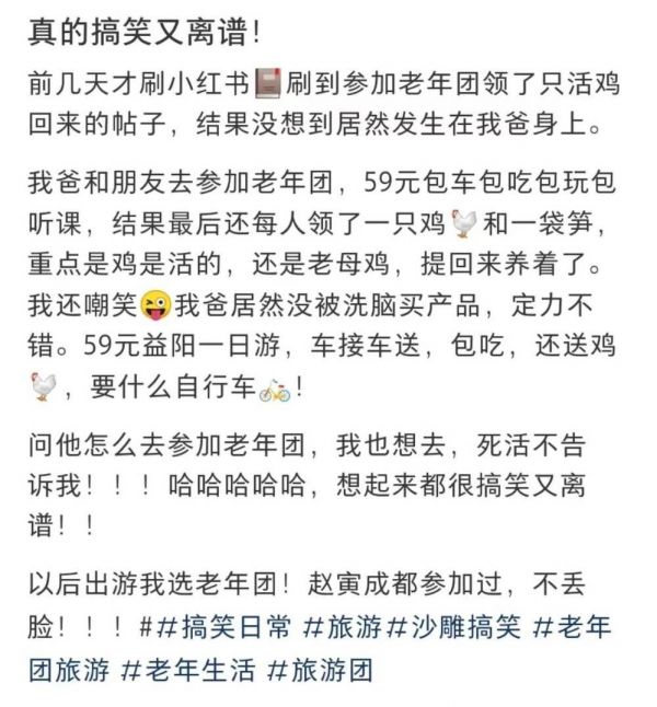 △价格便宜,成为了吸引年轻人选择老年旅行团的理由。/小红书@饼饼