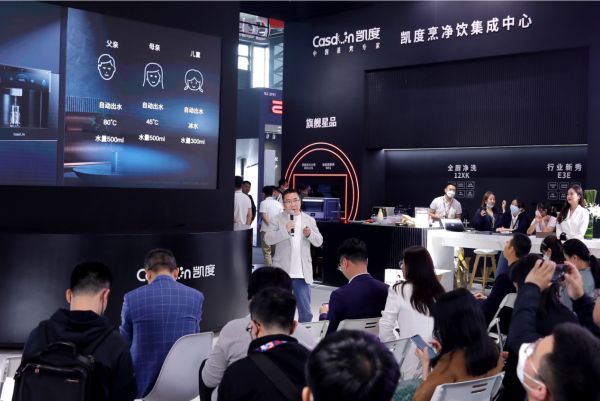 此次AWE上,凯度举行了“智连万物 1㎡=∞”全厨烹净饮系列新品发布会,重磅推出2023年度战略级新品。凯度电器创始人傅平对产品的核心技术卖点、 使用场景等,进行了详细的解读和说明。