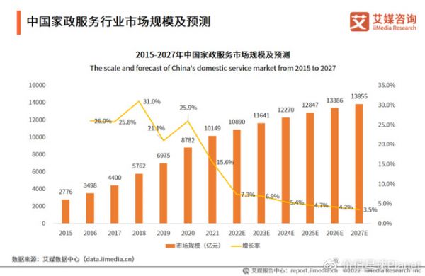 家政服务市场规模。图源:艾媒咨询