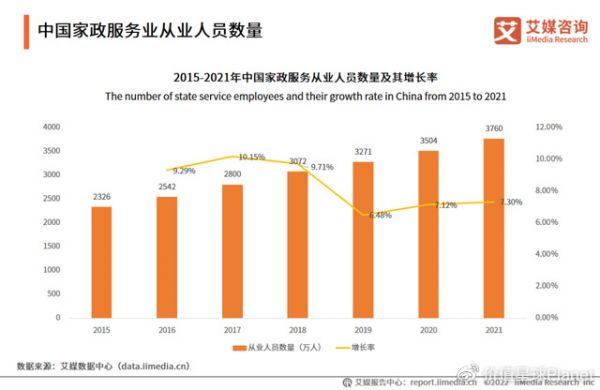 家政服务从业人数。图源:艾媒咨询