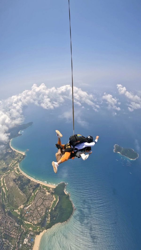 这个五一,早早预订的李唯得以在三亚完成了人生第一次高空跳伞。