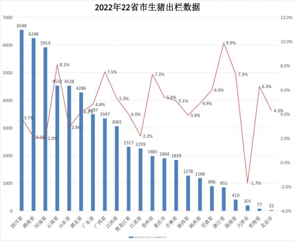 2022年22省市全国生猪出栏量