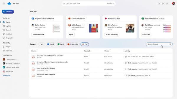 OneDrive 主页的改版已经可以使用,但是大部分新功能还在开发中。例如,“为您(For you)”部分,类似于目前的 OneDrive 消费者版,将在主页视图的顶部显示由人工智能提供的文件推荐。新的“共享”视图将显示你与合作者共同处理的文件;微软表示,这个功能将在“本季度”推出。新的“人员”和“会议”视图将让你以特定于上下文的方式查看文件,两者都将在今年晚些时候推出。
