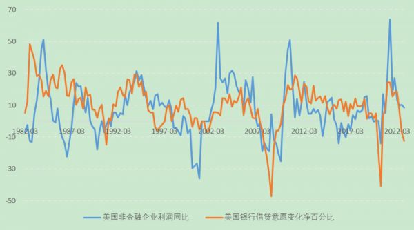 图2 美国企业利润与银行信贷意愿(%) 数据来源:美国经济分析局和美联储。