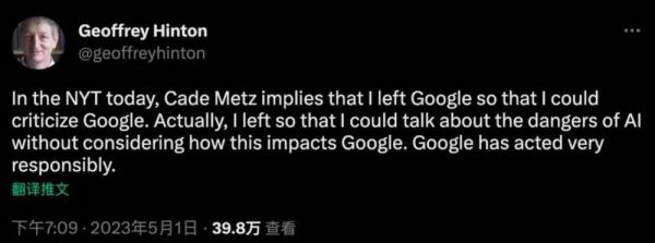 Google 的谨慎可以理解,毕竟现在的聊天机器人确实错漏百出。刚从 Google 出走、为 AI 风险奔走相告的“AI 教父”Geoffrey Hinton,也高度评价了前东家的责任心。