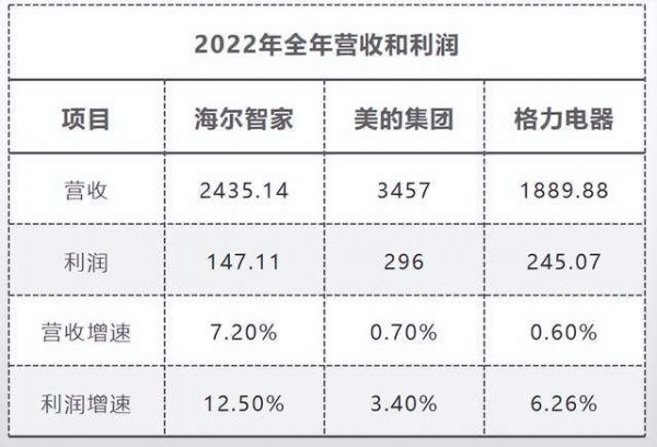 白电三巨头财报对比:海尔与美的争夺第一,格力掉队