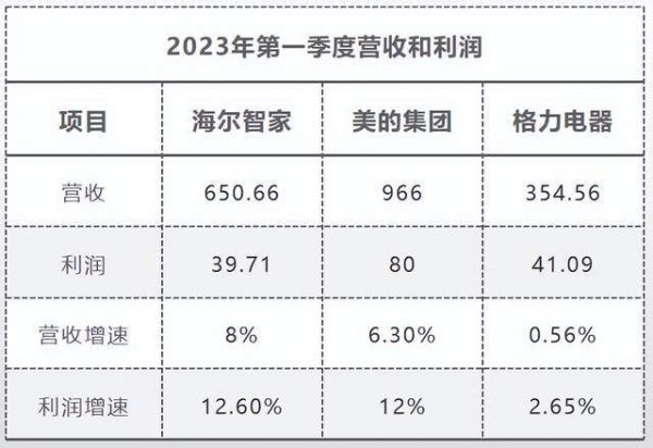 通过财报也可以看到,海尔智家2022年营收和利润增速与2023年一季度基本相当,而美的集团的波动率较大。