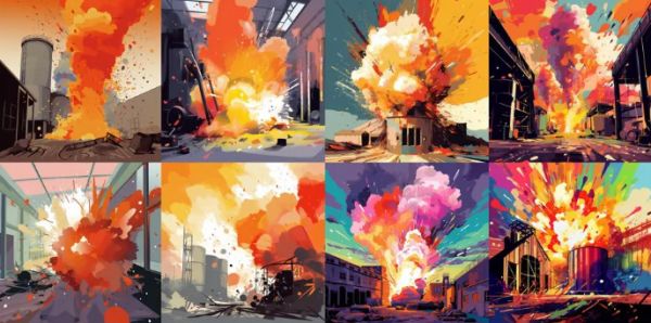 第二个提示词是“油漆厂爆炸,矢量艺术”: