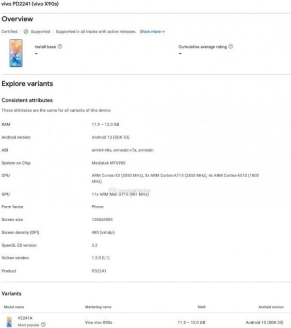 vivo X90s 手机现身 Google Play,搭载天玑 9200+ 处理器