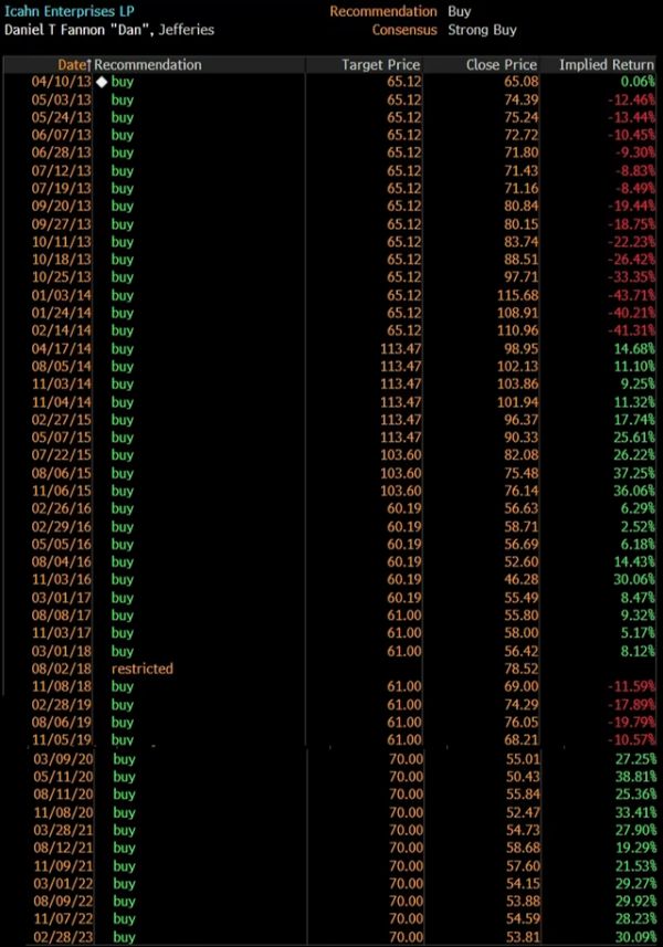 杰富瑞是唯一一家研究伊坎企业的大型投行,该机构一直将该公司的股票评级定为“买入”。