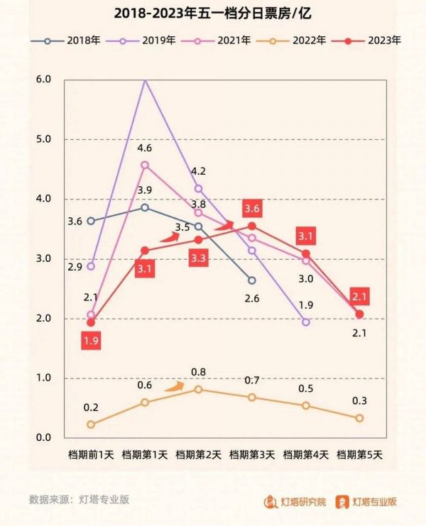 灯塔研究院发布的《2023年五一档市场洞察报告》数据显示,档期内累计产出15.19亿元票房,且伴随着连续两天的票房逆跌,今年五一档实现连续四天单日票房在3亿以上。