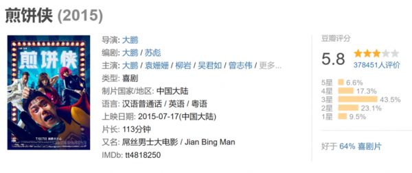 观众看过的喜剧类型越来越多,被逗笑的门槛整体抬高,创作难度增大,即使是同系列的作品,大多都呈现出口碑下滑的态势,而像《煎饼侠》《大闹天竺》之类的闹剧,更是出现口碑崩盘。