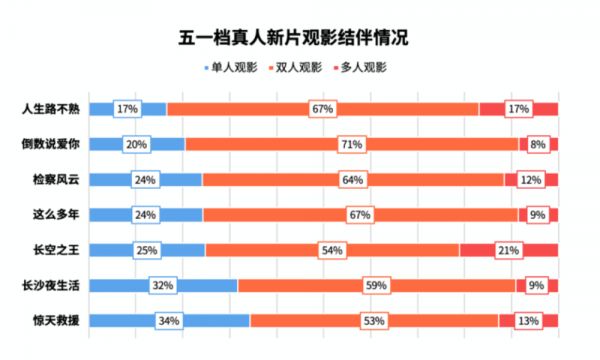 高上座率与影片题材关系密切,相比同档期其他影片,喜剧片契合的社交场景更多。猫眼研究院发布的《2023五一档数据洞察》报告显示,《人生路不熟》是档期内唯一一部双人及多人观影占比超80%的影片。