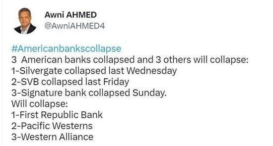 无论是否是巧合,目前这几家身处漩涡中心的银行,恰恰也是在硅谷银行爆雷后,被业内提及次数最多的一些银行。Nexities的CEO Awni Ahmed在3月时曾发表过一份在当时颇为热门的推文,表示“只要包括硅谷银行在内的3家银行倒闭,第一共和银行、阿莱恩斯西部银行以及西太平洋合众银行也会紧随其后倒闭。”
