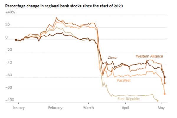 很显然的是,在第一共和银行上周末被倒闭接管之后,眼下美国银行业只要有任何的风吹草动,就会立刻引发市场的大举抛售。而几家被人们视作最为“脆弱”的银行,显然正成为众矢之的。