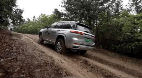 在非铺装路面上,大切诺基 4xe 的驾驶就更简单了,没有电机的时候,大切都能在沟沟坎坎前“如履平地”,有了电机加持,更直给的扭矩让脱困成了“无脑冲”。这种感受上的差别在车辆没电,需要纯用油来脱困时,格外明显。纯油越野很好,但它对驾驶者的水平和经验有一定要求,加上电的辅助后,越野的难度有所降低。力大飞砖这件事,只要力足够大就行了。