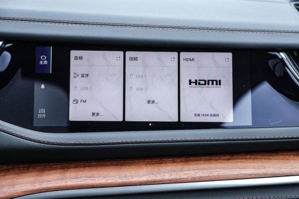 同时,海外版车型后排有两块独立显示屏,支持亚马逊 Fire TV 影音功能,两个屏幕可播放不同内容,也可进行空调设置,查看目的地导航时间等功能。进口到国内的车型,则没有这两块后座屏。
