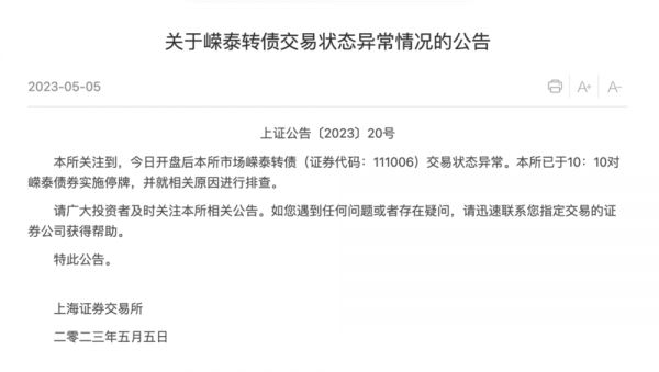 一、嵘泰转债交易乌龙,上交所紧急回应