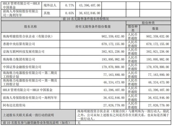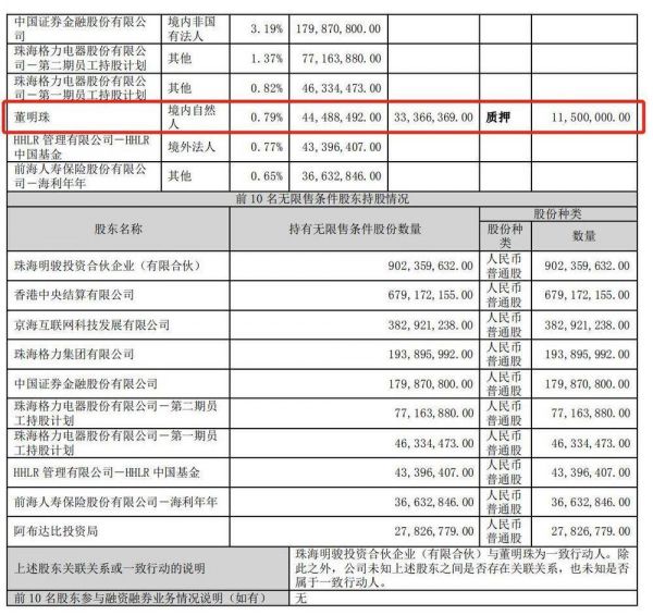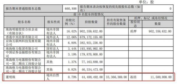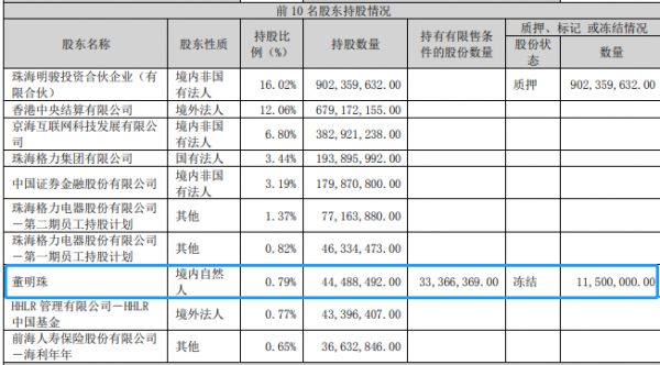 此前,格力电器一季报显示,截至一季度末,董明珠的持股数量为4448.85万股,持股比例为0.79%,其中有1150万股处于冻结状态。