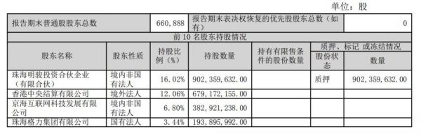 另外,格力电器一季报显示,公司第一大股东珠海明骏投资合伙企业(有限合伙)所持有的全部股份均处于质押状态。珠海明骏投资合伙企业(有限合伙)与董明珠为一致行动人。