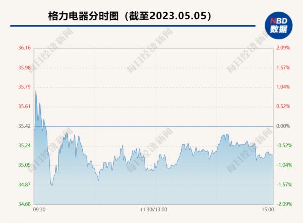 市场方面,近日格力电器股价“跌跌不休”,在交易日七连跌之后,截至今日收盘,格力电器跌0.76%,报收35.15元,总市值为1979.4亿。