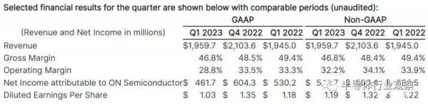 安森美半导体在5月2日公布了优于市场预期的2023年第一季财报。