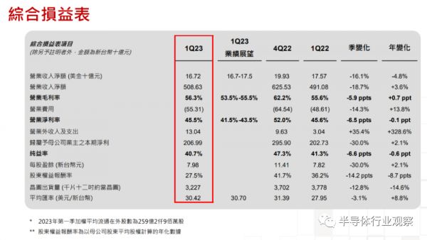 受到客户库存调整及需求疲软的影响。联发科2023年第一季营收为新台币956.52亿元,环比减少11.6%,同比减少33%;税后净利润为新台币168.74亿元,环比减少8.7%,同比减少 49.3%,下探近九个季度以来低点。