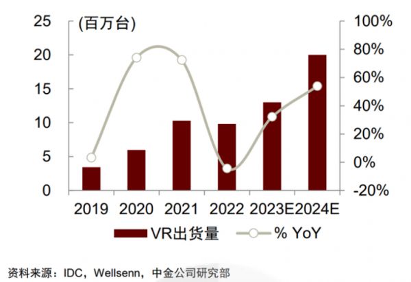 整个行业的销量,和十年发展相比,并不可观。2022年全球AR/VR头戴设备出货量为880 万台,同比下降了20.9%。完全不是要快速爆发的姿势。