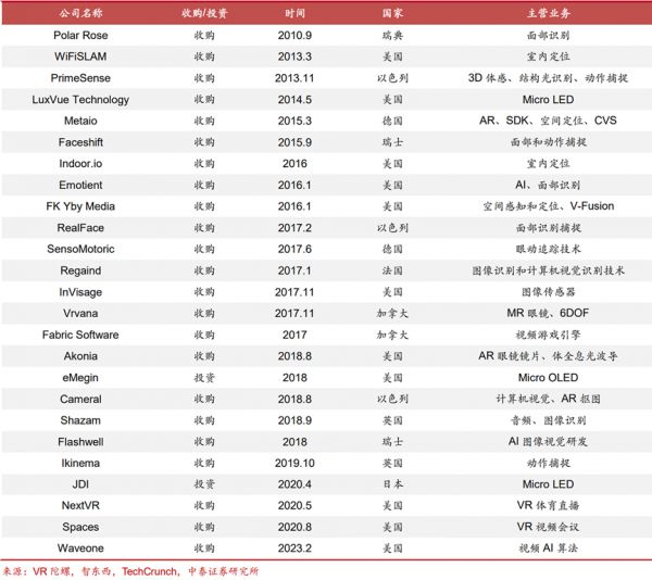 第二,苹果实力还是很强的,在XR领域,苹果从2016年后便加大了布局,陆续收购了包括动作捕捉、眼球跟踪、视觉等多家公司;2020年后又开始向下游应用场景扩展。也正是一系列的动作,让市场一直充满期待。同时,ARkit也已经成为最大的AR开发平台。